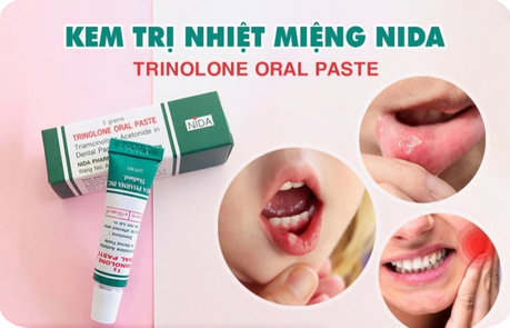 - Gel trị nhiệt miệng Nida Trinolone Oral Past hỗ trợ điều trị tình trạng nhiệt, viêm sưng, lở loét... ở vùng niêm mạc miệng.