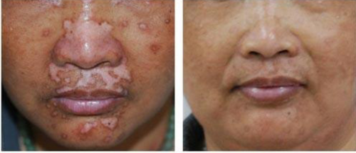 Các đốm lang ben được thu nhỏ, làm mờ và phục hồi màu sắc tự nhiên sau liệu trình (*)