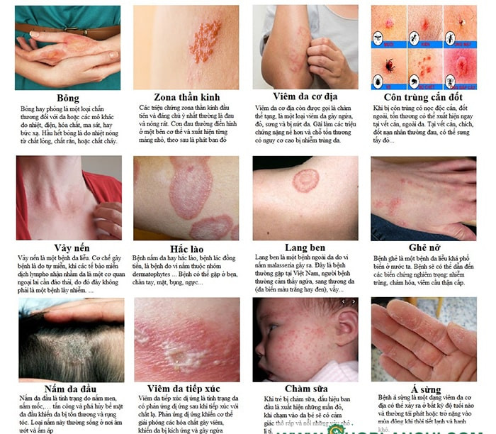 - Lang ben, Ghẻ lở, Hắc lào,…