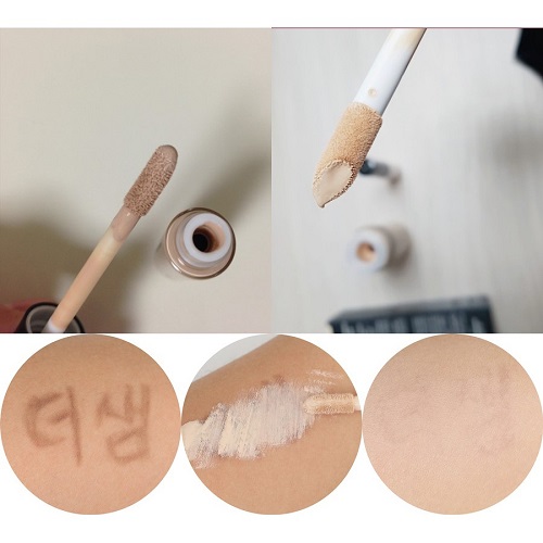✔️ Sản phẩm có vỏ ngoài làm bằng nhựa cao cấp, nắp đen, thông tin về sản phẩm và màu sắc được ghi phía sau bằng tiếng Hàn. Đầu cọ được vát nghiêng giúp việc chấm kem lên da dễ dàng và kiểm soát được lượng kem cần lấy.