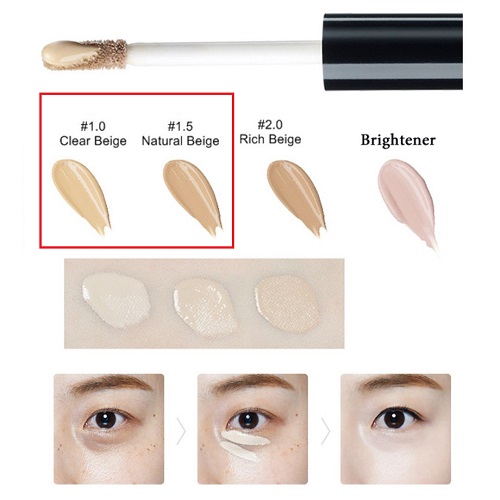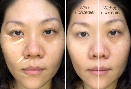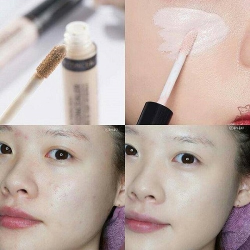 - Bước 1: Làm sạch da mặt và dùng kem dưỡng ẩm 2-3 phút trước khi dùng kem che khuyết điểm, để khem che khuyết điểm có thể trượt lên da một cách mượt mà nhất mà không bị bám lại tại khóe mặt hay các nếp nhăn trên khuôn mặt.