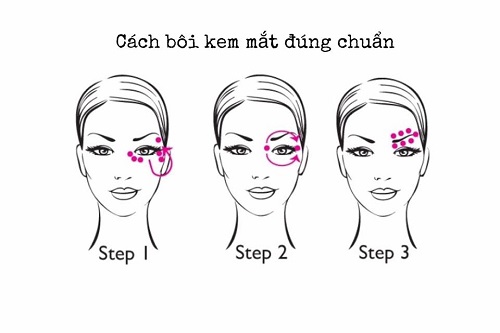 - Lấy một lượng sản phẩm vừa đủ và thoa đều lên vùng da quanh mắt (tránh tiếp xúc trực tiếp vào mắt) sau đó massage nhẹ nhàng theo hình tròn từ khóe mắt lên trên.