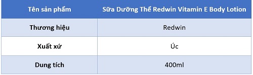 Sản phẩm: Sữa Dưỡng Thể Redwin Vitamin E Body Lotion.