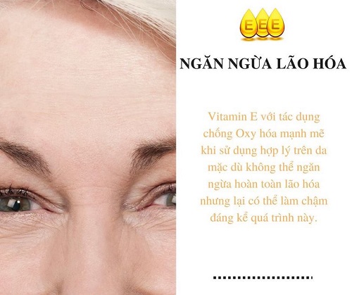 - Vitamin E có tác dụng rất tốt trong việc kìm hãm sự lão hóa của các tế bào da, cải thiện sức khỏe làn da, giúp da mịn màng, tươi trẻ, hạn chế nếp nhăn, mang đến vẻ đẹp trẻ trung, đặc biệt là với chị em phụ nữ.